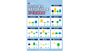 대경권 3분기 경기가 ‘완만한 회복’ 으로 대구 생산·수출은 견조, 경북은 건설·수출 부진이 지속 되고 있다.올해 3분기 대경권(대구·경북) 경제가 제조업 생산 증가와 고용률 개선에도 불구하고 건설·수출 부진으로 전반적으로 완만한 회복세를 보였다. 대구는 생산·소비·수출이 고르게 증가한 반면, 경북은 제조업과 서비스업은 증가했으나 건설과 수출에서 큰 폭의 감소세를 기록했다.대경권 광공업생산은 금속가공, 의료정밀광학, 전자·통신 등이 늘며 전년동분기 대비 4.5% 증가했으며 반면 건설수주액은 19.5%, 수출은 3.2%, 수입은 6.6% 감소해 경기 회복을 제약했다.고용률은 62.4%로 0.9%p 상승, 취업자는 3만 6…