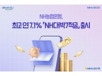 비대면 전용 예금 25주년 맞아 특별 금리 제공11월 12일부터 선착순 3만좌 한정 최대 월 30만 원 납입 가능신규 고객 대상 최대 연 7.1% 금리 및 ‘행운의 777 이벤트’ 진행NH농협은행(은행장 강태영)이 비대면 전용 예금 'e-뱅킹 예금' 출시 25주년을 기념해 최고 연 7.1% 금리를 제공하는 ‘NH대박7적금’을 출시한다고 7일 밝혔다.이번 상품은 12일 선착순 3만좌 한정으로 판매되며, 월 최대 30만 원까지 납입 가능하다. 가입은 NH올원뱅크 앱과 전국 농협은행 영업점에서 할 수 있다.‘NH대박7적금’은 1999년 …