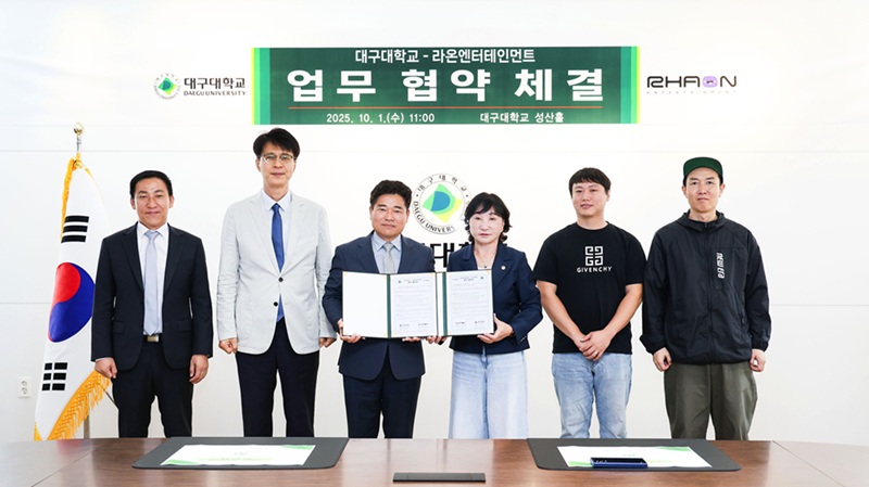 대구대는 지역 산업 수요에 맞춘 맞춤형 인재 양성을 강화하고, 라온엔터테인먼트는 실무 기반의 교육 협력으로 산업 경쟁력을 높이는 산학협력 모델을 구축한다는 계획이다.