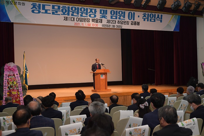 청도문화원은 1일 청도군민회관 대강당에서 코로나19 방역수칙을 철저히 지킨 가운데 제11대, 12대 문화원장 이·취임식을 개최했다고 밝혔다.