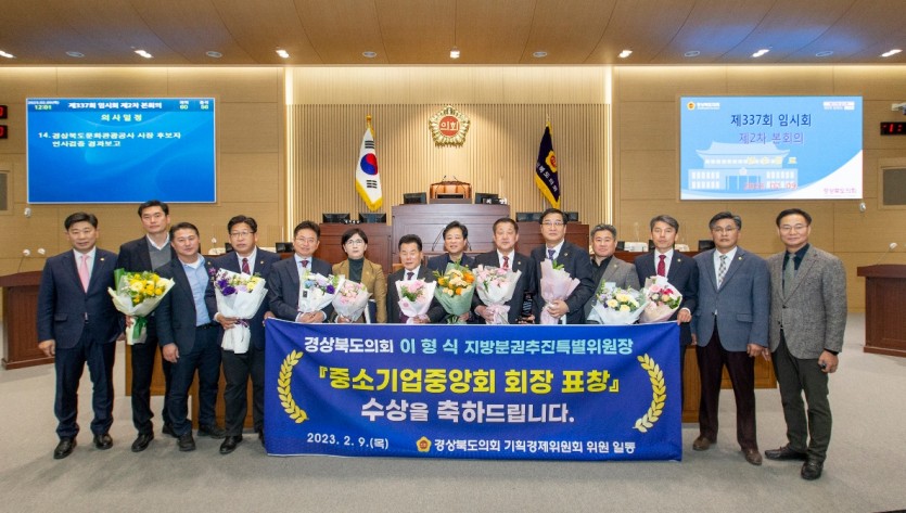 경북도의회 이형식 의원(예천, 국민의힘, 지방분권추진특별위원회 위원장)이 9일 지역 중소기업의 경쟁력 제고를 위한 경영활동 지원 및 일자리창출과 고용안전에 기여한 공로를 인정받아 중소기업중앙회 회장 표창을 수상했다.