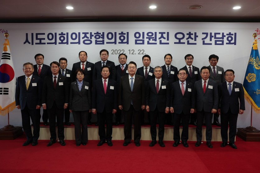 이날 전국 17개 광역의회 의장으로 구성된 대한민국시도의회의장협의회는 서울 용산 대통령실에서 윤석열 대통령과 오찬 간담회를 가졌다.