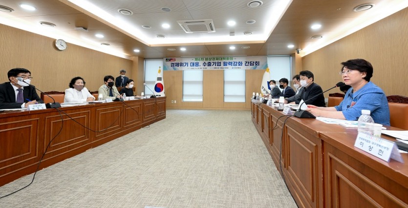 이날 회의는 전쟁, 봉쇄, 글로벌 긴축 등으로 원자재 가격상승, 고환율 등 어려움을 겪고 있는 수출기업 현장의 애로사항 정취와 해결방안 마련을 위한 다양한 의견을 나눴다.