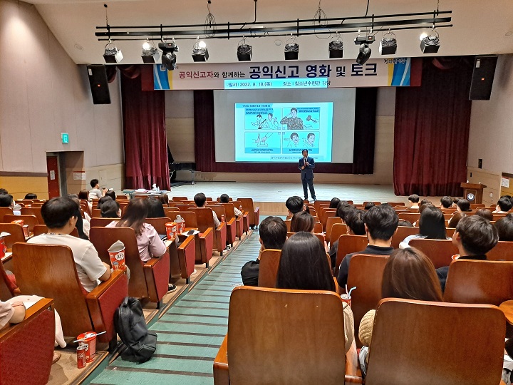 또한 ‘우리 사회를 바꾼 10대 공익제보자’ 중 한명인 한국청렴운동본부 이지문 이사장이 강사로 나서 공익신고 영화 및 드라마 상영, 신고의식 교육, 질의응답 순으로 이어졌다.