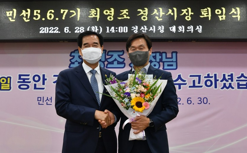 한편 최영조 시장은 경산시민의 한 사람으로 돌아가 더 행복하고 더 나은 미래로 힘차게 나아가는 경산을 응원하겠다”고 퇴임 소회를 밝혔다.