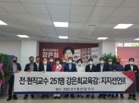 김형기(전 대구시장 경선 후보), 이상규(전 국립국어원장) 등 대구 경북 지역 전・현직 교수 251명을 대표한 교수들이 지난 25일 중구 삼덕네거리에 있는 강은희 대구시 교육감 후보 선거사무실에서 후보 지지를 선언했다.