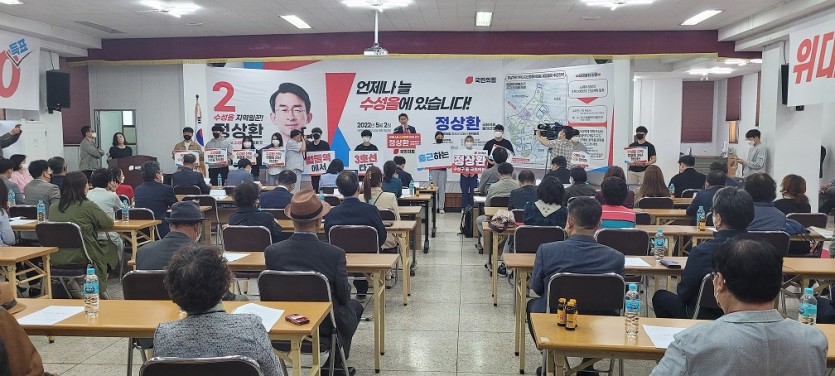 정 후보에 따르면 이번 수성을 국회의원 보궐선거는 윤석열 정부 성공에 기여할수 있는 후보가 돼야 한다고 주장했다.