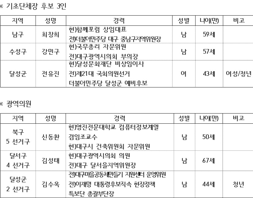 더불어민주당 대구시당 공직선거후보자추천관리위원회 ‘추천 1차 명단 발표’ > 정치/행정