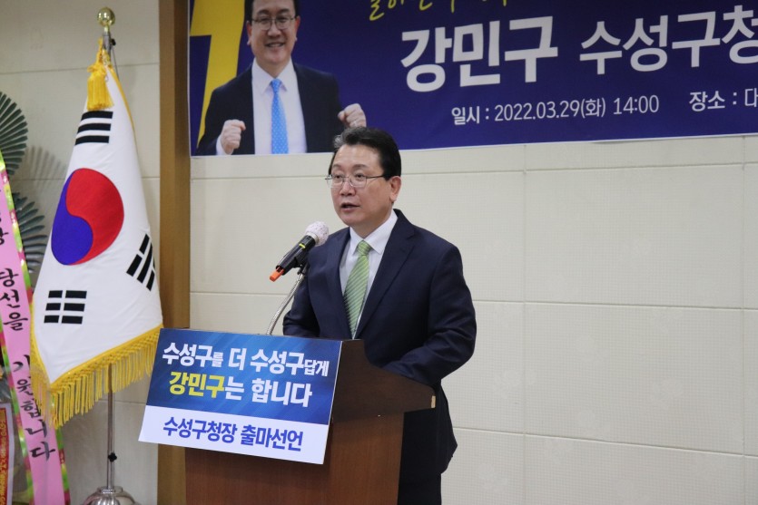 한편 강민구 부의장은 수성구청장 출마선언과 함께 수성구의 자부심을 더 키우고, 수성구를 한 단계 더 Level up하는 ‘수성구를 더 수성구답게’캠페인을 구민 전체와 함께 진행하겠다고 밝히며 수성구의 변화는 대구변화로 이어져 전국 3대 도시인 대구의 위상을 회복하는데 선도적 역할을 하겠다고 다짐했다.