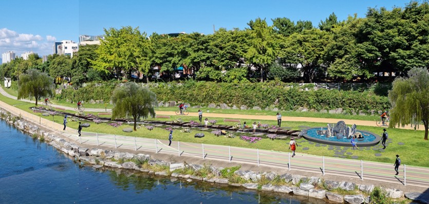 특히, 수조 안의 분수는 자연석과 수달조형물을 이용해 땅에서 솟아나는 샘물을 나타낼 예정이며, 깨끗한 물이 심산계곡에 솟아올라 실개천으로 흘러 수달과 함께 다양한 동·식물이 어우러져 살아가는 모습을 보여줌으로써 생명수로의 이미지를 표현한다.