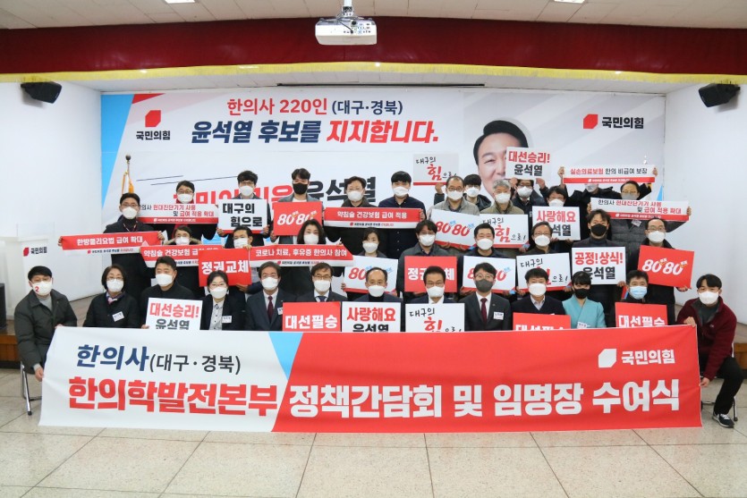 대구경북 한의사 220인이 지난 12일 제20대 대통령선거 국민의힘 윤석열 후보 지지를 선언했다.