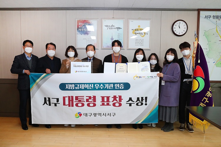 대구 서구가 행정안전부로부터 ‘2021년 지방규제혁신 우수기관’으로 인증 받아 대통령 표창·인증패 및 재정인센티브 1억 원을 수상했다고 3일 밝혔다.
