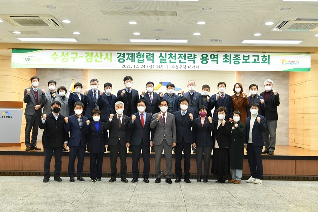 경산시는 24일 수성구청 대강당에서 최영조 경산시장, 이기동 경산시의회 의장, 김대권 수성구청장, 조용성 수성구의회 의장 등이 참석한 가운데 "수성․경산 경제협력 실천전략 용역" 최종보고회를 개최했다고 24일 밝혔다.