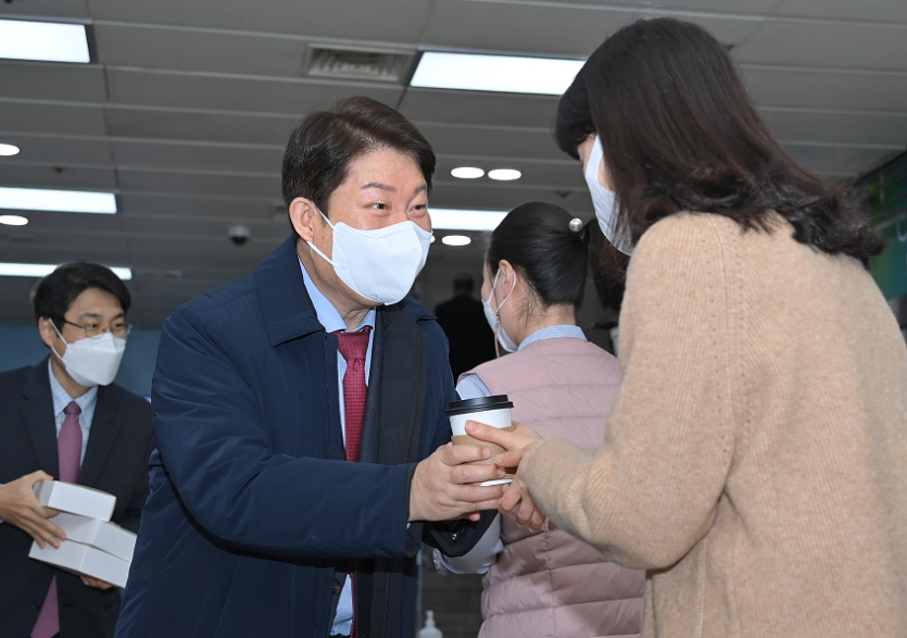권영진 대구시장은 31일 시청 로비에서 출근하는 직원들에게 커피와 간식을 나눠주며 한 해 동안 코로나19 대응과 시정업무 추진으로 고생한 노고를 격려했다.
