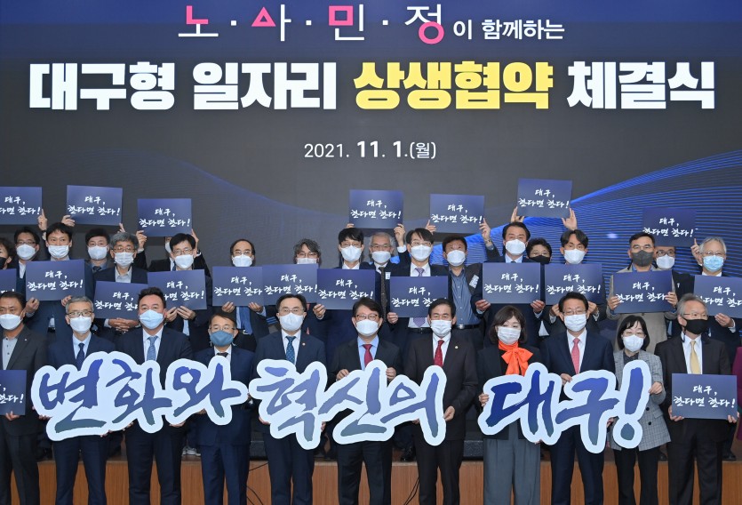 이번 협약을 통해 탄생한 대구형 일자리는 기술혁신·동반성장, 선진형 노사관계 구축, 지역인재 육성을 3대 핵심 상생요소로 정하고 노사민정의 연대와 협력을 통해 다가올 시대를 준비하고 미래산업의 주도권을 선점하겠다는 큰 비전을 제시하고 있다.