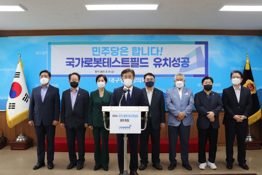 더불어민주당 대구시당은 13일 대구시의회에서 '국가로봇테스트필드'유치를 환영하는 기자회견을 개최했다.