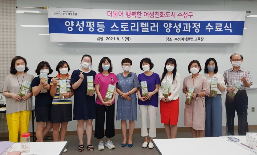 대구 수성구는 3일 수성여성클럽에서 ‘2021년 양성평등 스토리텔러 양성 교육 과정’ 수료식을 개최했다.