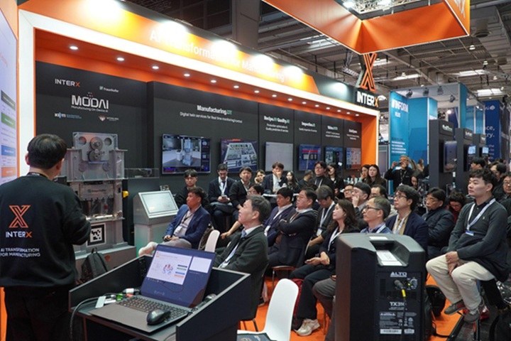㈜인터엑스는 생성형 AI 기반 자율제조 솔루션을 선보이며 프라운호퍼연구소와 기술 교류를 가졌고, ㈜제이솔루션은 설비 고장 사전예측 AI 솔루션을 통해 30여 개 해외 기업과 상담을 진행했다.