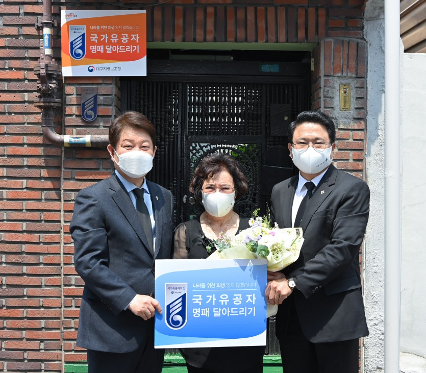 대구시 명패 달기 행사는 국가유공자와 유족에 대한 예우 강화와 자긍심 고취를 위해 지금까지 15,600여 국가유공자 가정에 명패를 달아드렸으며, 올해는 국가유공자 유족 7,000여 가정에 명패를 달아드릴 예정이다.