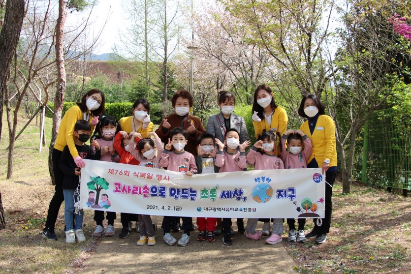대구유아교육진흥원은 제76회 식목일을 기념해 유아들과 함께 '고사리 손 끝에서 새롭게 돋는 새싹, 행복한 지구'를 주제로 2일까지  식목일 행사를 실시했다.