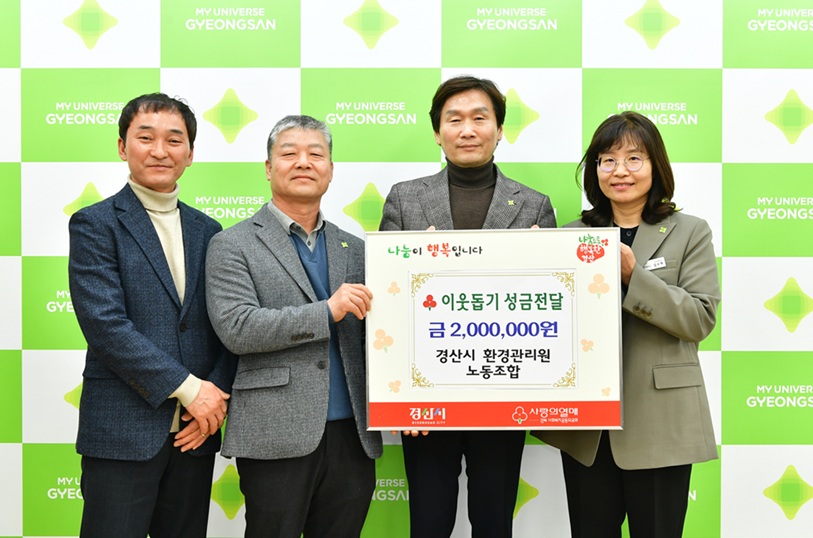 남상복 위원장은 "경산시에 근무하는 환경관리원으로서 지역사회에 희망과 온정을 전달하고 싶었다"며, "앞으로도 꾸준한 나눔 활동을 통해 지역사회 발전에 기여할 수 있도록 최선을 다하겠다"고 말했다.