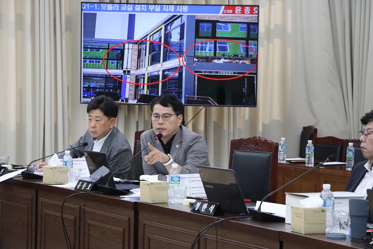 경북교육청이 모듈러 교실부실 자재 및 특정 업체 편중 계약 문제에 대해 비판이 제기됐다.