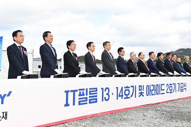 도레이첨단소재(대표이사 사장 김영섭)가 23일 구미국가산업5단지에서 IT필름 13·14호기 및 아라미드섬유 2호기 기공식을 개최했다.