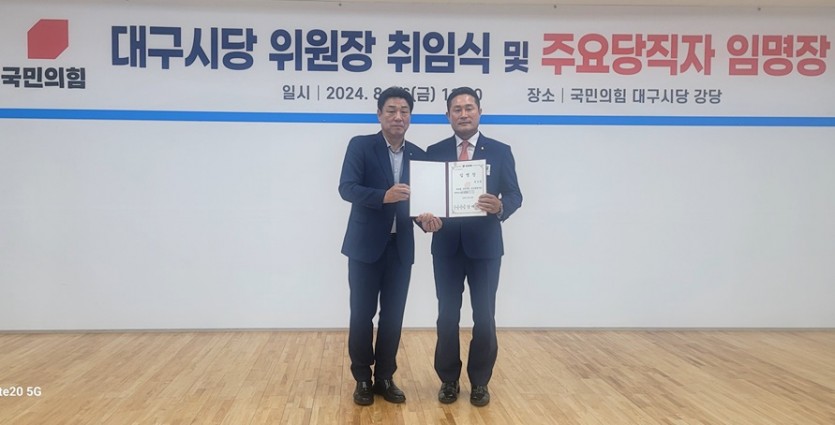 국민의힘 대구시당은 16일 5층 강당에서 새로운 출발을 다짐하는 시당위원장 취임식 및 주요 당직자 임명장 수여식을 성대히 개최했다고 밝혔다.