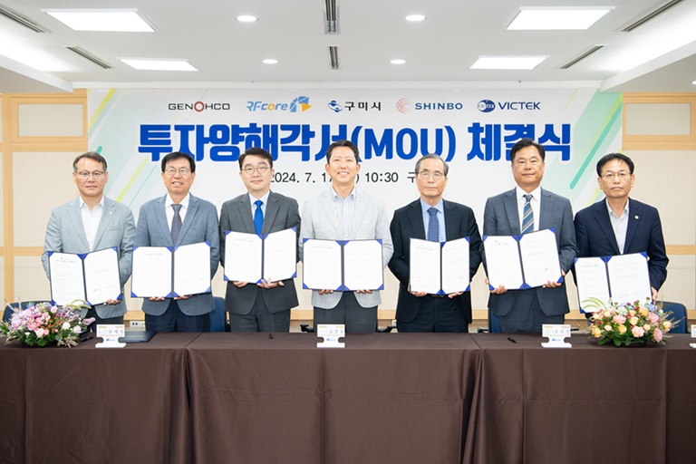 ㈜신보, ㈜제노코, 알에프코어㈜, ㈜빅텍과 합동 투자양해각서(MOU)를 체결했으며 유재정 ㈜신보 대표이사, 유태삼 ㈜제노코 대표이사, 이병남 알에프코어㈜ 부사장, 임현규 ㈜빅텍 본부장, 김장호 구미시장, 박교상 시의회 의장, 한화시스템 양태호 구미사업장장 등 관계자 15여 명이 참석했다.