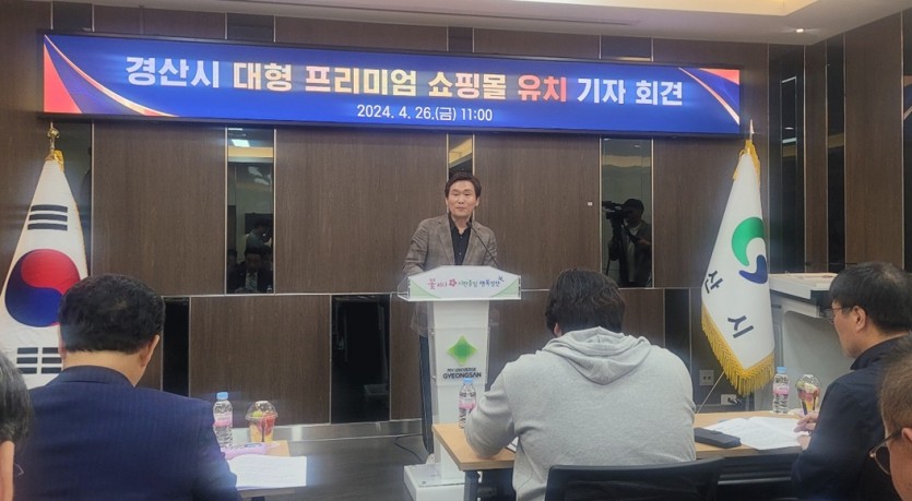 조지연 국회의원 당선인· 경산시장 공동 기자회견 "대형프리미엄 쇼핑몰유치" 발표