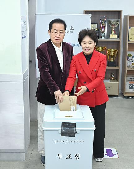 홍준표 대구시장은 6일 부인 이순삼 여사와 함께 중구 삼덕동 사전투표소를 찾아 제22대 국회의원선거에 소중한 한 표를 행사했다.