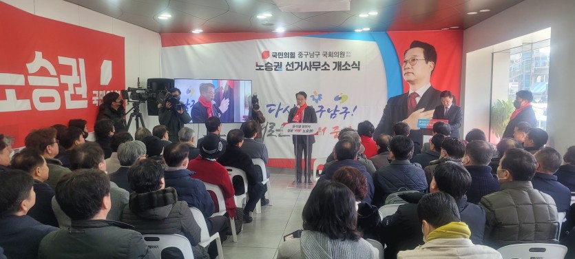 노 예비후보는 20일 남구의 선거사무실에서 이인중 화성산업 회장.손정태 후원회장.최철원 전 남산초등학교 회장 등 약 300여명의 당원과 주민들이 참석한 가운데 개소식을 개최했다.