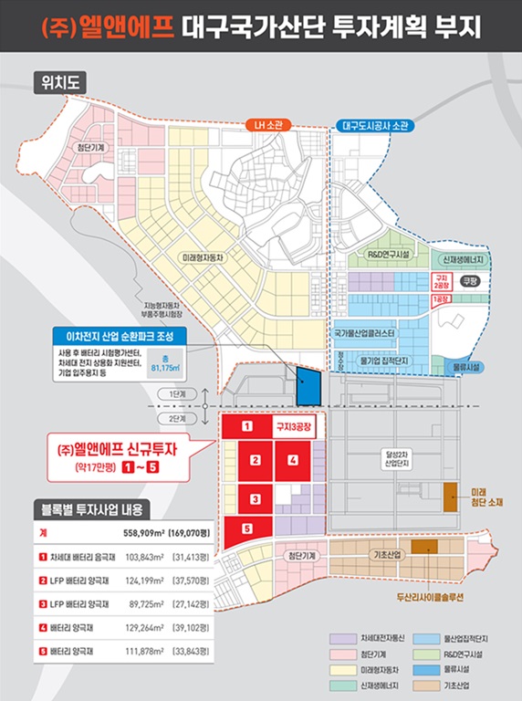 대구시와 엘앤에프는 구지3공장에서 2조 5500억 원 규모의 신규 투자협약을 체결했다고 밝혔다.