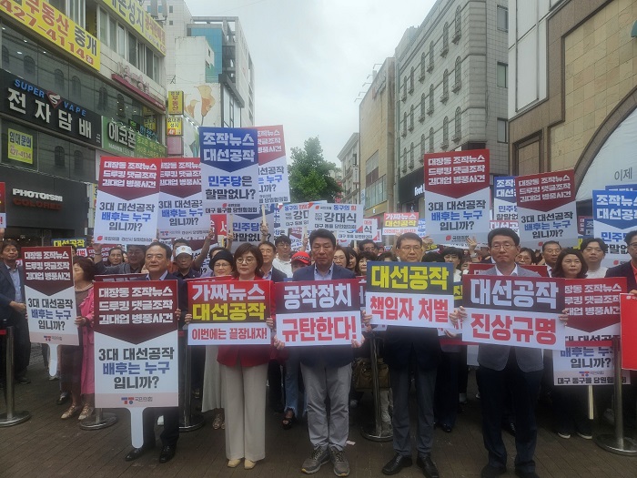 국민의힘 대구시당은 15일 구.대구백화점앞 광장에서 ‘대선공작 대국민 진상 보고 및 규탄대회’를 개최했다고 밝혔다.