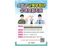 의성군이 군복무 청년들의 복지 강화를 위해 ‘군복무 청년 상해보험 지원사업’을 본격 시행한다.이번 사업은 군복무 중 발생할 수 있는 예상치 못한 사고나 질병으로 인한 경제적 부담을 덜어주는 제도로, 보험금을 통해 청년들의 안전망을 구축하는 데 목적이 있다.지원 대상은 의성군에 주소를 둔 현역병, 상근예비역, 의무경찰 및 의무소방원 등으로 병역법에 따라 군복무 중인 청년이며 다만, 직업군인·경찰·소방공무원 및 사회복무요원은 지원 대상에서 제외된다.군복무 시작과 함께 별도의 신청 절차 없이 자동으로 가입되며, 전역 시 자동 해지되며 보…