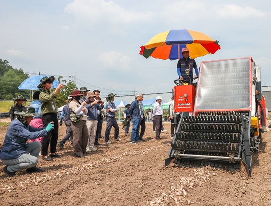 군은 지난14일 진행된 의성마늘 기계수확 현장 연시회를 통해 넓은 두둑폭과 경운기형 기계에 중점을 둔 노동집약적인 관행 마늘 재배방식에서 벗어나, 파종·수확·병해충 방제에 최적화된 다양한 트랙터 부착형 마늘 기계를 보급해 농가경영비를 개선하는 성과를 기대중이다.