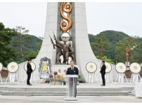 영양군은 지난 7일 제69회 현충일을 맞아 영양호국공원(영양읍 서부리)에서 순국선열과 호국영령의 숭고한 희생정신을 기리기 위한 추념식을 개최했다고 밝혔다. 이날 오도창 영양군수, 김석현 영양군의회의장 등 주요기관장과 보훈단체 및 유가족, 학생대표 등 400여명이 참석해 추모의 시간을 가졌다.추념식은‘일상 속 살아있는 보훈, 모두의 보훈’이라는 주제로 대한민국의 오늘을 있게 한 순국선열과 호국영령의 희생에 대해 추모하고 애국정신을 선양하기 위해 마련됐다.오도창 영양군수는 “추념식은 엄숙하고 안전하게 진행하고 국가유공자와 유족…