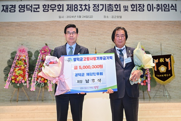재경 영덕군 향우회 남후식 회장은 지난 24일 서울 공군호텔에서 제83차 정기총회 및 회장 이·취임식 에서 김광열 영덕군수에게 고향사랑기부금 500만 원을 전달했다.