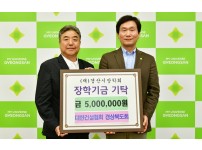 지역 학생들이 꿈을 펼쳐나가기를 바라며 장학금 전달 (재)경산시장학회는 대한건설협회 경상북도회가 13일 시청을 방문해 인재 육성을 위한 장학금 500만원을 기탁했다고 13일 밝혔다.박한상 회장은“학생들이 어려운 환경 속에서도 학업에 전념할 수 있는 환경을 만들어 주기를 바란다”며, “건설인들이 힘을 모아 작은 보탬이 되어줄 수 있어 뜻깊다”고 소감을 말했다.조현일 이사장(경산시장)은 “침체한 경기로 건설시장이 힘든 시기임에도 불구하고 지역사회와 지역 인재 육성에 관심을 주셔서 감사드린다”며, “학생들이 학업에 전념할 수 있…