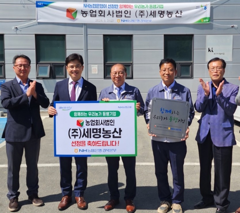 NH농협은행은 우리농산물을 원재료로 농가소득 증대에 기여하는 기업을 대상으로 전국에 10개 기업을 ‘함께하는 우리농가 동행기업’으로 선정했으며 경북에서는 농업회사법인 ㈜세명농산은 농협을 통한 판로확대, 홍보, 여신우대 등을 지원한다.