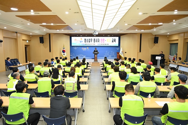 김천시는 24일 시청 강당에서 공무직 환경미화원 70여 명을 대상으로 “청소업무 종사자 안전․복무 교육”을 했다고 밝혔다.