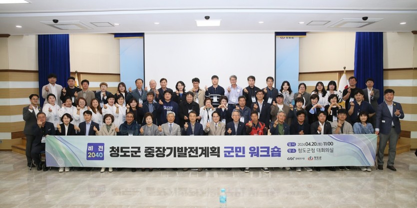 청도군은 지난 20일 군민과 경북연구원, 관계 공무원 등 70여 명이 참석한 가운데 비전 2040 청도군 중장기 발전계획 수립 군민 워크숍을 개최했다고 밝혔다.