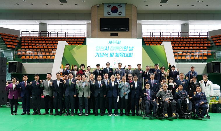 영천시는 17일 영천체육관에서 영천시장애인단체협의회가 주최한 ‘제44회 장애인의 날 기념식 및 체육대회’를 장애인 및 가족, 자원봉사자 등 800여 명이 참석한 가운데 개최했다고 밝혔다.