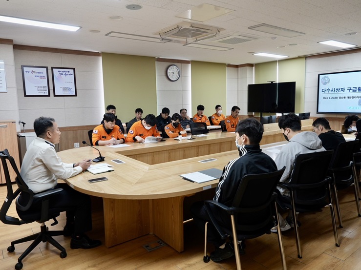 특히 지난 2월 26일 중산동 아파트 화재로 대피 중이던 주민 16명이 연기를 흡입해 이중 5명이 임시 의료소 치료 중 병원으로 이송됐던 사례와 진량읍에서 발생한 화물차간 추돌사고로 5명의 부상자가 발생한 사례 등 다수의 부상자가 동시에 발생하는 사고에 대한 논의가 진행됐다.
