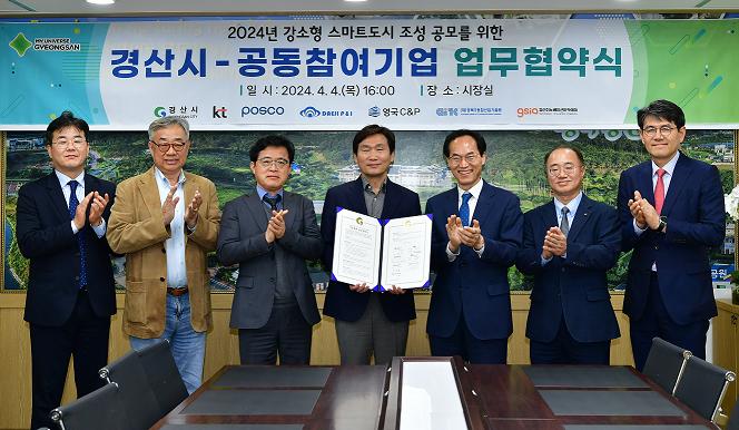 경산시는 4일 시청에서 ㈜KT, ㈜POSCO 등(이하 “공동 참여사”)과 함께 2024년 스마트도시 조성 공모사업 공동 참여를 위한 상호협력 업무협약(MOU)을 체결했다고 밝혔다.