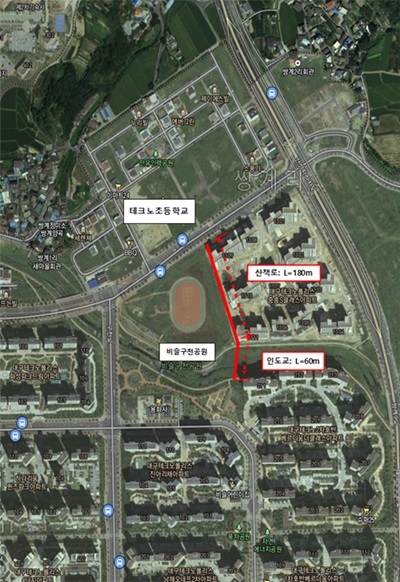 한편 테크노초등학교의 통학로 조성을 위한 ‘유가 테크노초등학교 통학로 개설공사’는 2022년 10월 근린공원 조성계획 변경 용역 착수를 시작으로 다음 해 7월 실시설계 용역을 거쳐 9월부터 본격적으로 진행됐다.