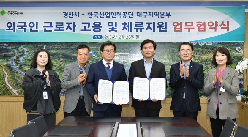 경산시는 한국산업인력공단 대구지역본부와 외국인 근로자 고용 및 체류 지원을 위한 업무협약을 체결했다고 26일 밝혔다.