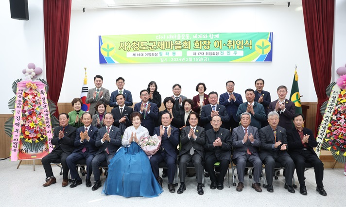 (사)청도군 새마을회는 지난 16일 새마을회관 대회의실에서 김하수 청도군수, 김효태 청도군의회 의장, 군의회 의원 및 읍면 새마을회장 등 90여 명이 참석한 가운데 제16대 정해용 회장과 제17대 전인주 회장의 이·취임식을 가졌다고 밝혔다.
