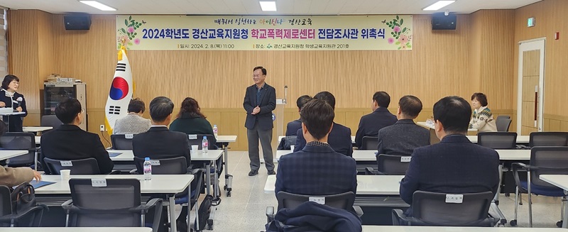 경산교육지원청은 지난 8일 2024년 학교폭력제로센터 "학교폭력 전담조사관"위촉식을 실시했다고 밝혔다.