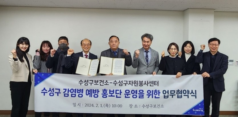 대구 수성구보건소는 지난 1일 수성구자원봉사센터와 ‘수성구 감염병 예방 홍보단’ 운영을 위한 업무협약을 체결했다고 밝혔다.